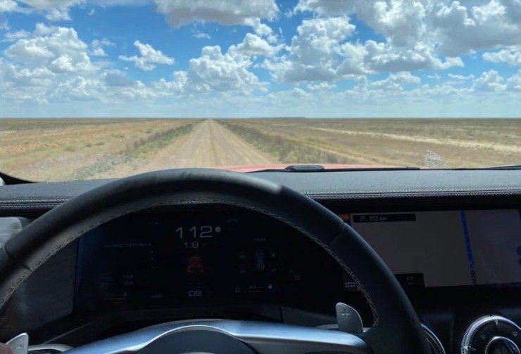 Наше путешествие продолжается, и рано утром мы выехали из Актау в сторону пустыни Оралкум. Нас ждал долгий путь, и первой контрольной точкой стал город Бейнеу. Дорога туда заняла около шести часов. К счастью, она была великолепной: множество заправок, ровная дорога, а стада верблюдов, коров и лошадей создавали уникальный колорит.
