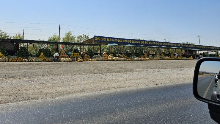 В Мирзакенте нас ожидал курьезный случай: местный житель, увидев нашу мощную колонну TANK, догнал нас на своей машине и подарил огромные сладкие дыни. Этот момент стал настоящим украшением нашего дня!